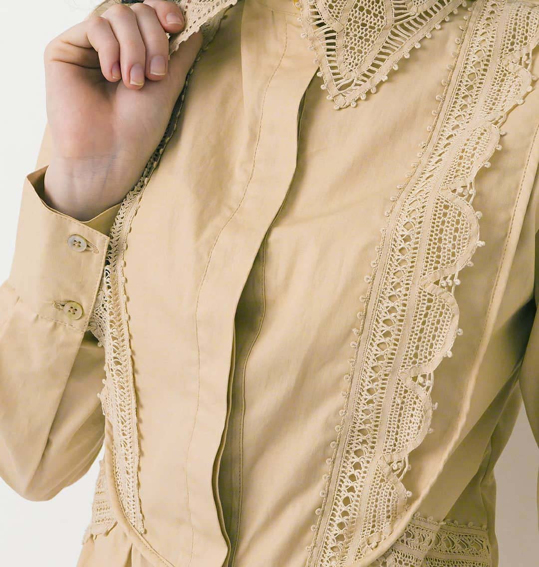 Cotton Long Sleeve Shirt for Women with Handmade Lace Trims