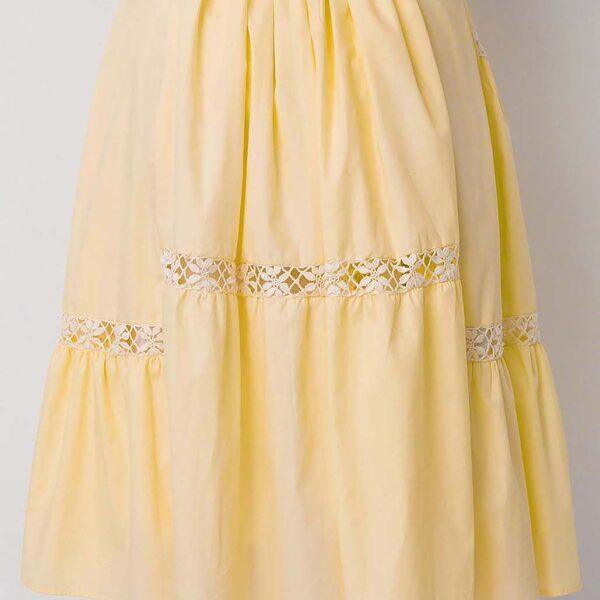 But what truly sets this skirt apart is its exquisite attention to detail. Like a secret kept just for you, a delicate whisper of bobbin lace trims the hem, adding a touch of vintage romance and a lovely, delicate finish. This isn’t just a skirt; it’s a piece of wearable art, designed to move with you. The gentle flare and midi length create a graceful, swinging silhouette that feels both sophisticated and carefree. And because a beautiful skirt should feel as good as it looks, it’s been fully lined for a smooth, comfortable fit against your skin.